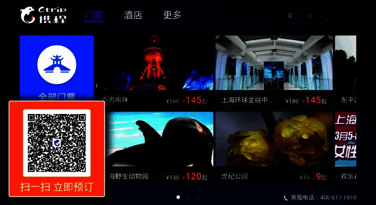 携程旅行网作为中国领先的综合性旅游服务企业,是集机票、酒店、旅游、商旅预订于一体的一站式旅游服务平台。携程旅行TV版是携程为满足新时代电视用户个性化需求而开发的新产品。目前,用户能在该版本上查询、预订国内超4000个景点的门票以及35万家酒店。