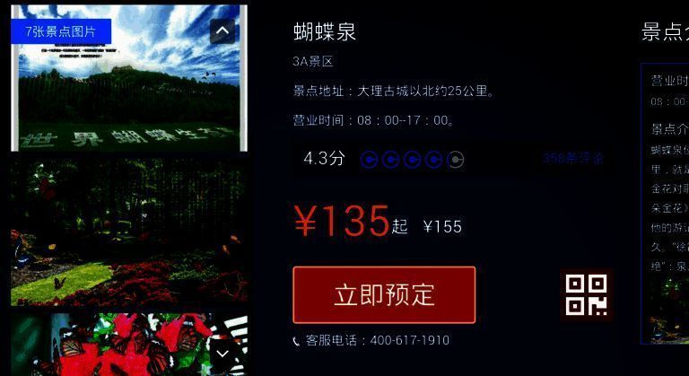 4、旅游:提供国内各大城市旅游景点的当地游、租车服务,以及热门演出票和景点门票的查询、预订。