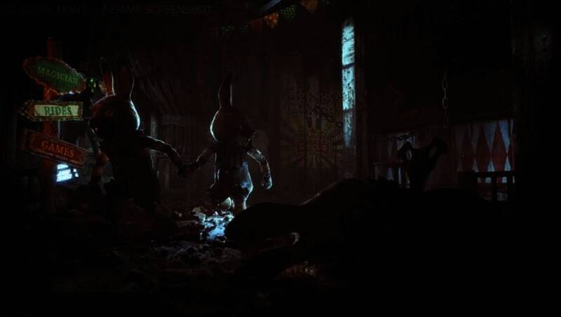 《嘉年华狩猎》将玩家带入黑暗神秘的马戏团场景。游戏把玩家分成两个对立阵营,其中一名玩家化身为强大神秘的嘉年华怪物,白天可能是身怀隐形、传送等独特技能的魔术师;其他玩家则扮演脆弱的发条兔子。兔子们要在危机四伏的马戏团中躲避怪物追捕,同时为自己和同伴补充发条能量;怪物则要利用地形与技能抓住兔子获取能量,双方的每一次行动都生死攸关。