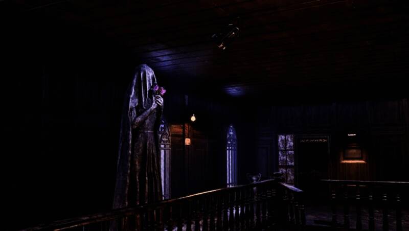 游戏的美术风格充斥着诡异和神秘的色调,阴暗的酒店走廊、无处不在的阴影、怪异的艺术装置,都让玩家能直接感受到一种令人窒息的氛围。酒店的墙壁上可能布满了斑驳的血迹,昏暗的灯光闪烁不定,营造出强烈的恐怖感。