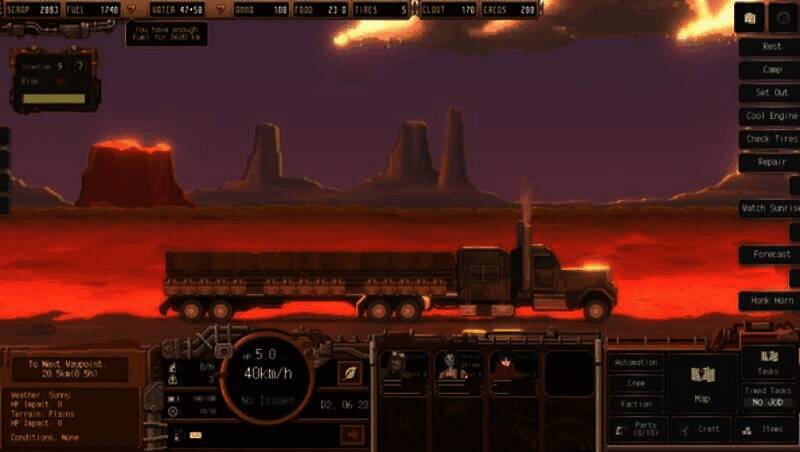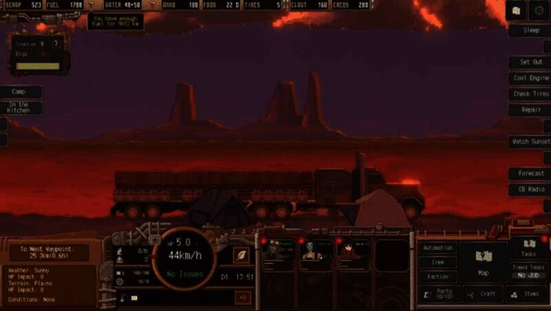 3、复杂天气系统:在与风暴和隐藏危险斗争的同时,开辟穿越尘土的道路。可设置营地躲避恶劣天气,白天再继续骑行。