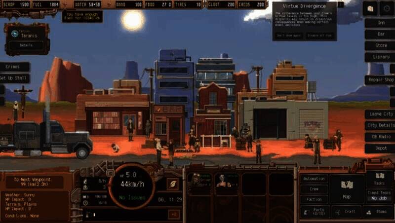 Dustland Delivery是一款后世界末日生存商业模拟游戏。在废土中挖掘获利,完成任务发展贸易帝国,组建冒险家队伍,将城市打造成尘土飞扬的首都。