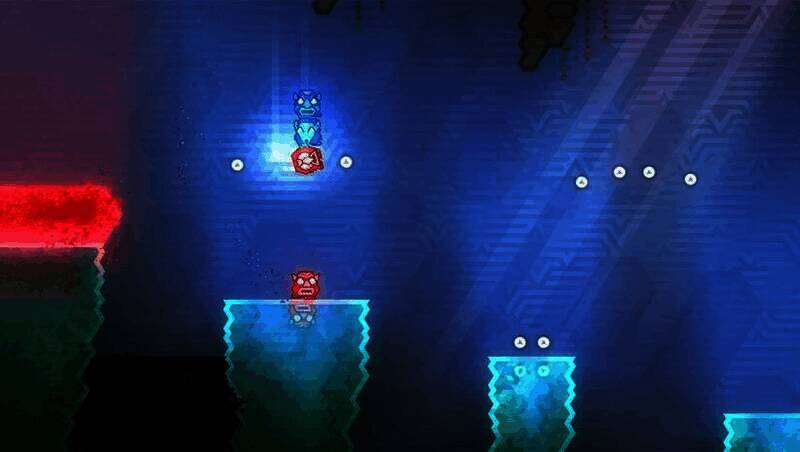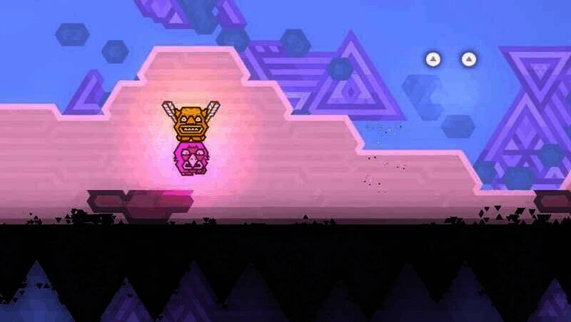 玩家能让两个小图腾角色同时跳跃,实现伪两步跳。游戏还具备引力翻转、空中惯性、冰面滑动与自由落体等机制,地图中的跨色设计更是对玩家的反应速度和协调能力提出了考验。