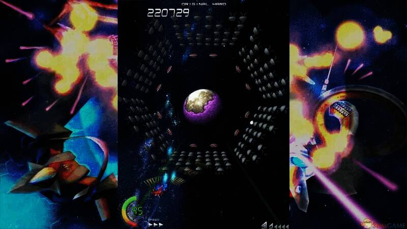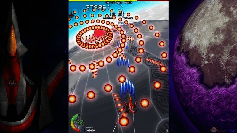 在武器设置上,游戏提供了两种类型的武器。一种是弹药会集中在前方的前方集中型,另一种是能够同时攻击左右两边的扩散型。此外,玩家还可以装备护盾来消除敌人的子弹,但由于护盾和射击武器采用的是切换型操作,所以无法同时使用。