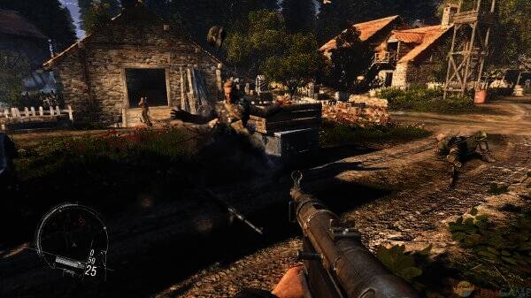 作为一款运用孤岛引擎CRYENGINE的二战题材FPS作品,小编自然地将其与《使命召唤5》进行了对比,结果发现前者的质量并没有比后者高出多少,不免有些失望。就游戏画面而言,过场动画的画质糟糕得令人难以直视,不过游戏画面倒没有太辜负孤岛引擎,实现了动态光照、延迟光照、动态软阴影等效果。小编试玩后发现,游戏的地图设定有几处明显抄袭《孤岛危机3》的痕迹,一个是超现实战争背景,一个是二战背景,这让人不禁吐槽开发商的偷懒程度。