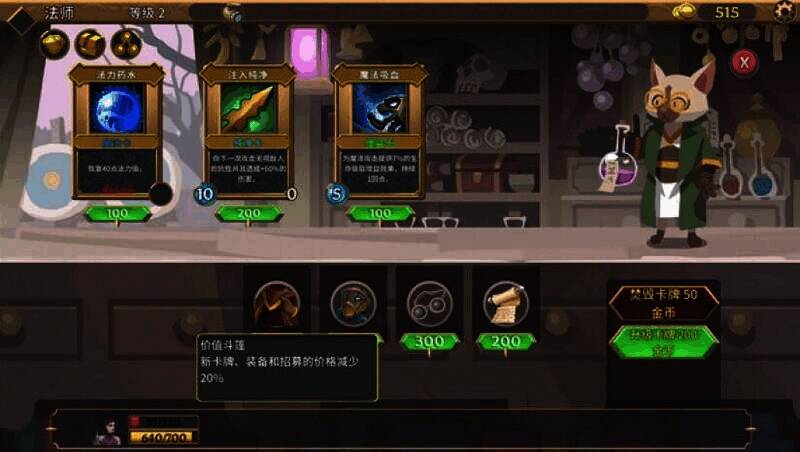游戏中还支持对卡牌进行复制、升级和增强,充分释放卡牌的潜能!玩家可以选择直截了当地高伤害秒杀敌人,用魔法震慑怪物,或者释放负面效果慢慢折磨对手,精心搭配连击牌组,一回合达成所有目标!