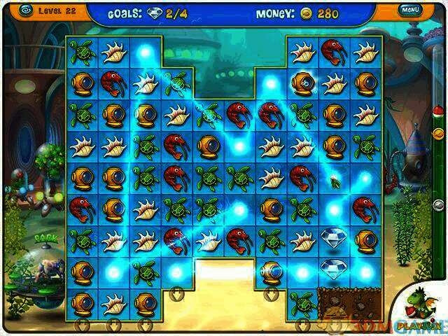 在《鱼之王国:时间深处》中,只需将3个相同的物体连接在一起就能完成消除操作。随着游戏的推进,通关条件也会有所不同,有的需要清除障碍,有的则要求让钻石落到最下方,而且各种障碍会逐渐增多。