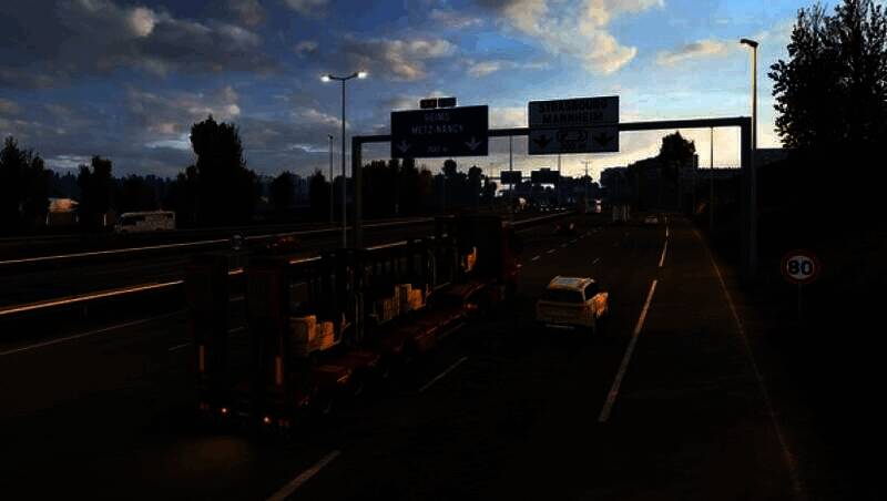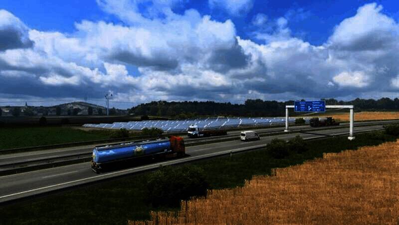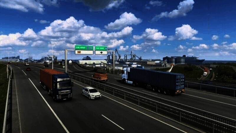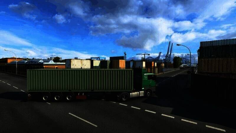 游戏的背景设定在欧洲,玩家可以在英国、德国、意大利、荷兰、比利时、波兰等多个国家的城市之间自由穿梭。游戏中的国家边界设计十分逼真,比如高速公路上两国国旗分列两侧,欧盟国家还会有欧盟旗。玩家在运输货物的过程中,能够尽情欣赏到欧洲各国的美丽风光和著名地标建筑。