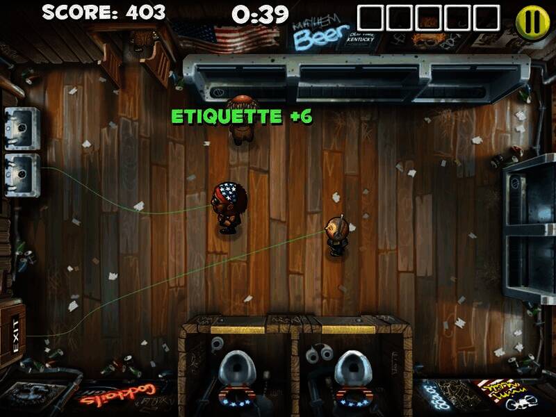 这是一款狂热的画线游戏,警告:游戏里有具杀伤力的猛击动作。在Men’s Room Mayhem中,你负责引导如厕者,要保证厕所干净,让他们避开麻烦。