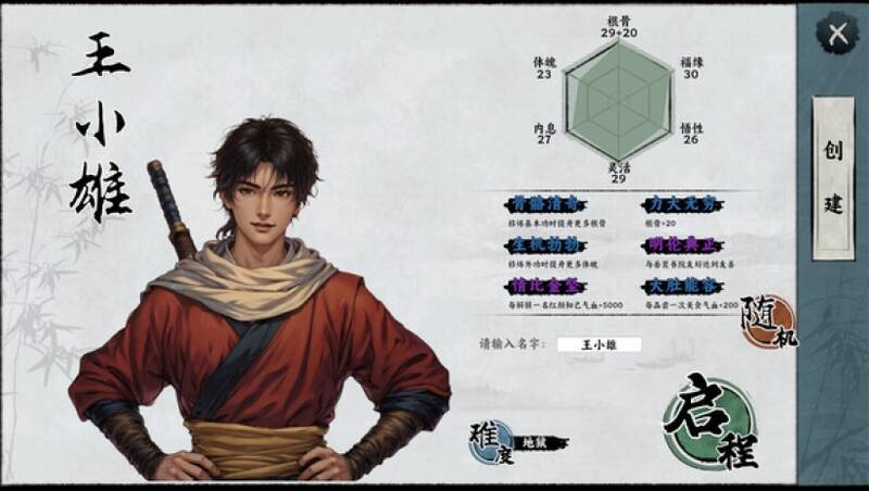 游戏运用水墨渲染技术,角色立绘采用传统工笔风格,场景融合了写意山水(如衡山云海运用动态粒子效果)与精细建模(汝城主街充满市井烟火气)。战斗特效突出武侠张力,剑气轨迹残留墨痕,内功爆发呈现水墨晕染。UI设计以卷轴、符箓为灵感,数据面板隐藏于山水画屏风之中。未来还将更新天气系统与昼夜光影变化,增强沉浸式的江湖体验。
