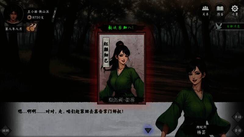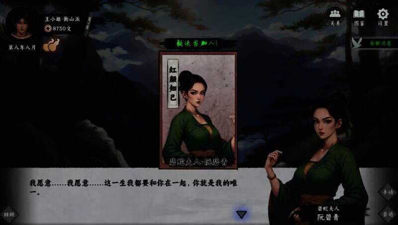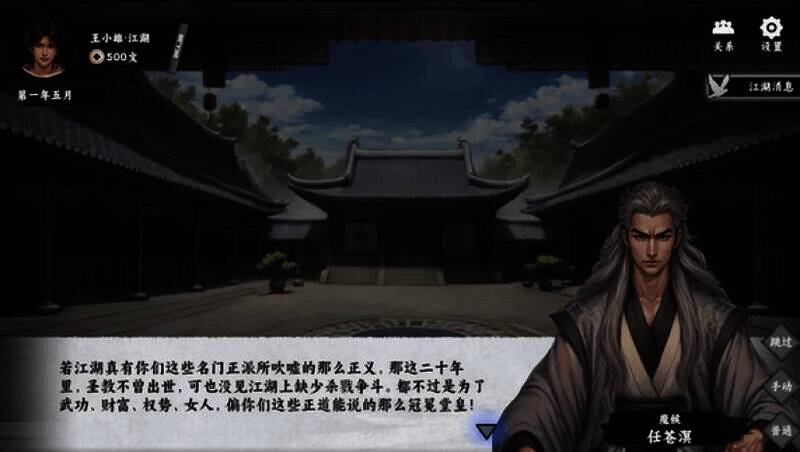 在拯救百姓或夺取秘宝等事件中做出抉择,积累“侠义/诡道”值,触发不同结局,如成为武林盟主或隐世高手;