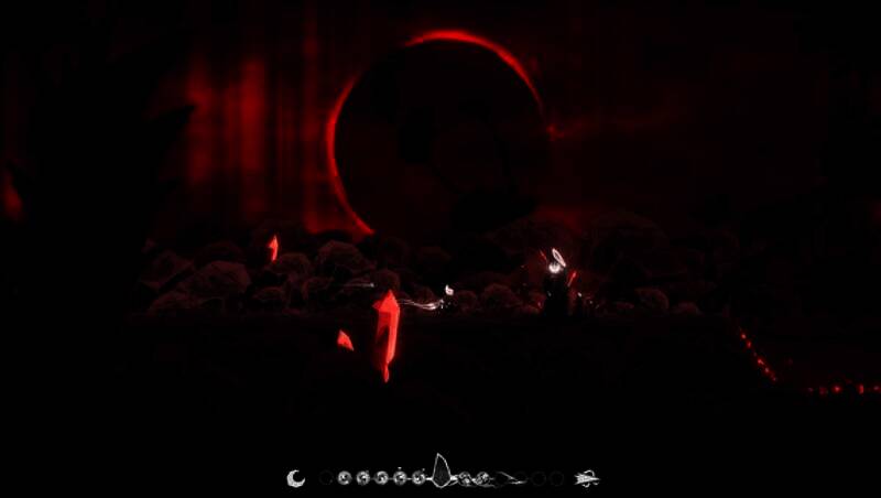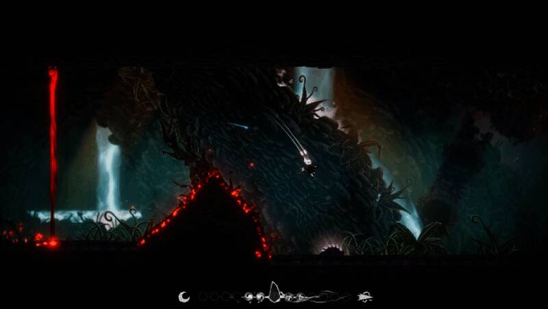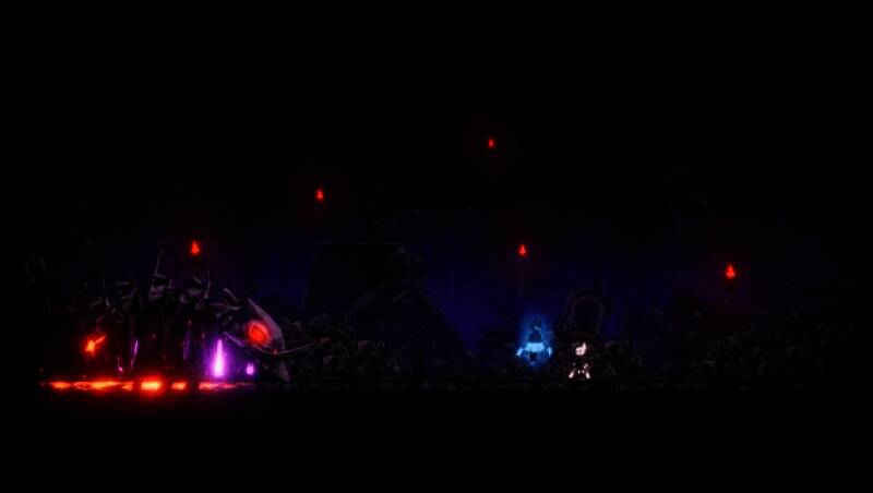 游戏运用2D画面技术,构建出极具特色的深渊世界。以黑红色调为主,暗红色的太阳散发着阴郁的光芒,即便有绿色植被,也呈现出黑绿色调,生动地营造出压抑、绝望的地底氛围。深渊中岩浆翻滚,与洞中的晶石相互映衬,增强了画面的沉重感。在一个巨大的洞穴场景中,墙壁上闪烁着诡异的光芒,地面流淌着炽热的岩浆,费伊在其间穿梭,画面极具视觉冲击力。