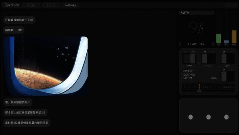 该游戏的核心特色是打造了真实的跨越时空对话体验。时间与现实平行的设定,让玩家仿若真的在和一位身处遥远未来、太空遇险的朋友聊天,极大地增强了代入感。Aliya性格生动,从开朗乐观到偶尔流露出的脆弱,都通过聊天过程中的话语和反应传递给玩家,使玩家仿佛真的在陪伴Aliya度过艰难时光。