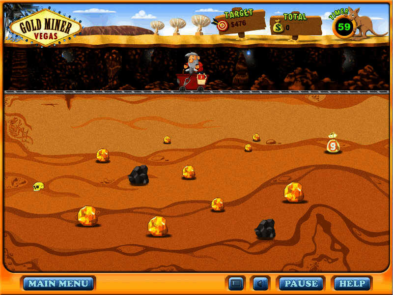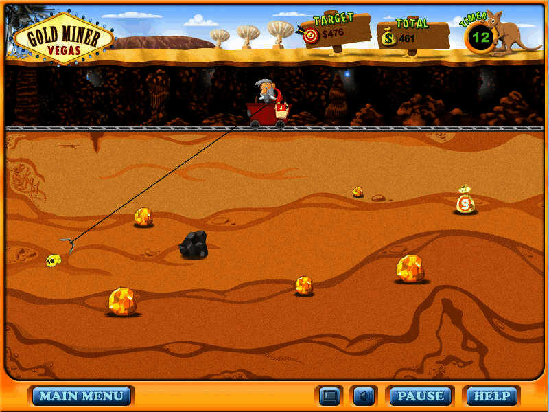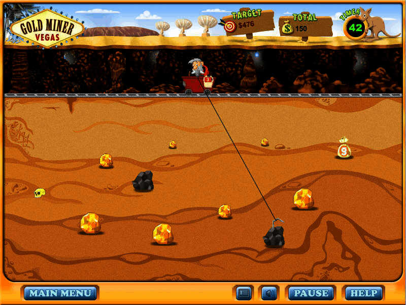 按下“↓”键放下钩子开始捞取金子;若有炸弹,按“↑”键扔出炸弹;购买东西时,单击鼠标左键。不同宝物价值各异,有价值数以百万的金子等待玩家挖掘,玩家可充分利用游戏内道具。
