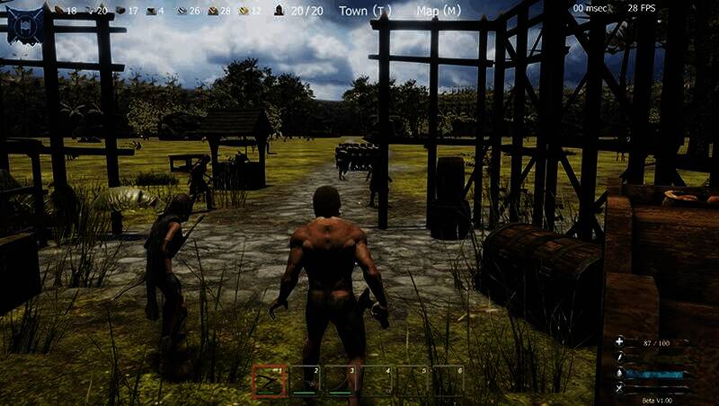 武器:有骨刀、新手棍棒、骨俱乐部、木矛、木弓、铁皮匕首、矮人弓、铁矛、铁皮剑、生锈的剑、长剑、维京斧、维京剑、大锤、Cross、部落刀、黑甲斧、骑士剑、钢锤、影刃等。