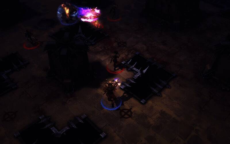 与其他玩家一同游戏有诸多优势,也会对游戏产生显著影响。与队友一起游戏时,玩家可获得额外的经验值、金币和Magic Find加成。在队伍中,玩家能在画面上方看到队友的生命值和当前状况。在城镇中点击队友的战旗,玩家可立即加入战斗。