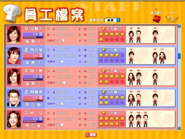 游戏中,从服务台带位员、厨房厨师、端盘与清洁桌面的服务生、收银台结账员到餐厅外发传单拉客的宣传员,全部由明星充当,所以合理调度明星从事合适工作至关重要。