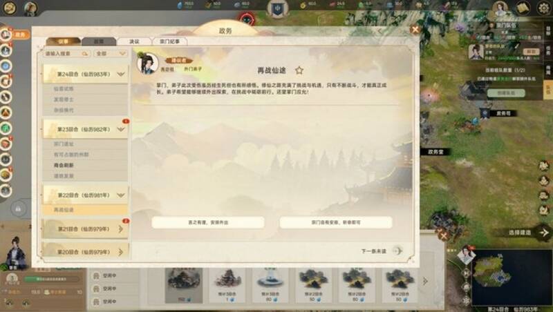 这个新世界充满了神秘和危险,玩家需要主动去探索。可以发现凡人的城市,与他们建立良好的联系,从而获取资源和支持;探寻远古宗门的遗址,从中寻找失落的功法秘籍和强大的法宝;遇到本地的其他宗门时,根据局势决定是合作还是竞争;挑战危险的妖巢,清除威胁并获取珍稀材料;闯入孕育天才地宝的密境,为宗门的发展增添动力。在战斗方面,游戏提供了丰富多样的战斗方式,剑修的凌厉剑气、术修的神秘法术、体修的刚猛体魄,都能在战斗中发挥独特的作用。此外,军阵、护山大阵等大规模战斗手段,在宗门间的冲突和抵御外敌入侵时,起着至关重要的作用。