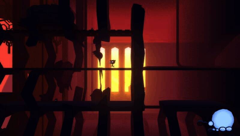 游戏的美术风格融合了《Limbo》的暗黑压抑与《茶杯头》的大胆色彩,机械废墟与有机生物交织的场景充满了张力。角色设计极具辨识度,脑袋的充气状态通过体积变化直观地反馈给玩家,机体的金属质感与环境光影形成鲜明对比。