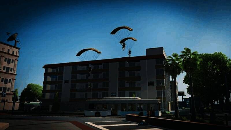 玩家可利用滑翔伞、滑索从高处转移,通过翻窗、翻越矮墙快速占据有利地形。