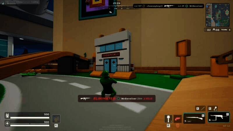 《Mini Royale》是由Cyberwave精心开发制作,rokaplay负责发行的一款精彩冒险游戏。准备好投身一场刺激满满的射击体验,在Mini Royale的世界中尽情奋战!你将化身为绿色玩具士兵,在宛如巨大儿童房间的场景里,于大逃杀、死斗等多种模式中为生存而拼搏,唯有实力最强的玩家或团队方能赢得胜利。