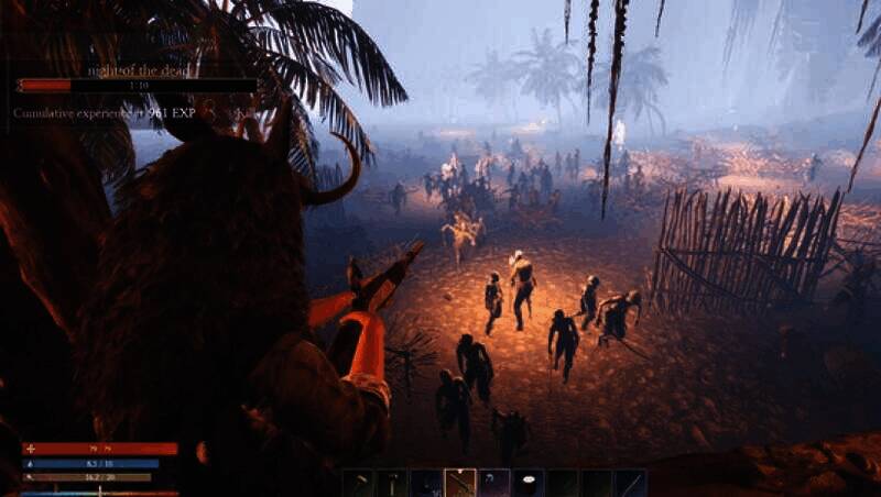 白天,玩家需要在广袤的岛屿上采集资源、狩猎野兽,建造自己的基地,并且通过制作武器和防具来提升自身的生存能力;夜晚,玩家则要化身为英勇的战士,抵御如潮水般涌来的亡灵,巧妙利用陷阱、防御工事以及策略布局来守护防线。