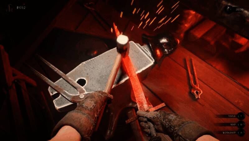 武器修复需要进行真实的操作,如使用熔炉、锤击、抛光等工序,修补裂痕或提升锋利度都会对最终售价产生影响,细节模拟度极高。