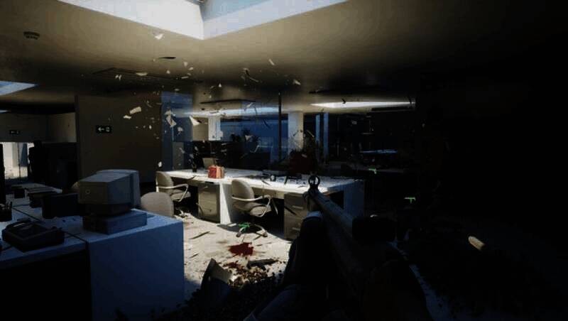 游戏玩法极具复古风格,作为主视点射击游戏,它模拟了机械战警头盔里的UI效果。按下特定按键,绿色扫描线会勾勒出敌人的轮廓,提示敌人的位置,方便玩家瞄准射击。战斗过程充满暴力元素,玩家可以用各种方式打击敌人,打爆敌人的头、用环境物品砸击,让场景布满敌人的鲜血,颇有B级片的风格。这种简单直接、充满爽感的玩法,让玩家仿佛置身于早期的射击游戏中,体验到纯粹的游戏乐趣。在一场激烈的街头巷战中,玩家利用扫描线精准锁定敌人,用手枪连续爆头,伴随着敌人的惨叫,尽情享受复古玩法带来的刺激。
