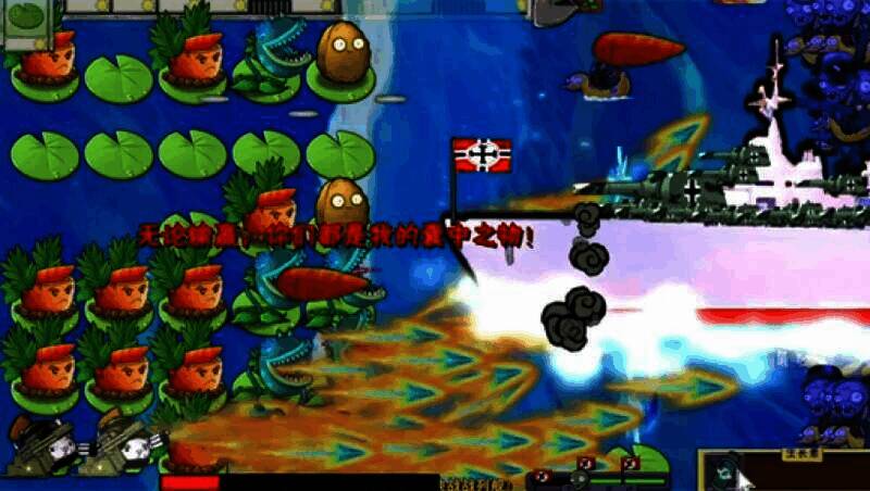 游戏保留了原版阳光收集与植物布阵的核心玩法,同时引入了更具深度的策略维度。玩家需要部署玉米迫击炮、喀秋莎火箭炮等具有二战风格的植物,并且可以利用每局限用一次的火焰喷射器、生长剂等道具来增强战斗力,这有点类似《植物大战僵尸2》的能量豆系统。新增的海战、空战模式中,僵尸会驾驶潜艇、轰炸机从多个维度发起进攻,玩家需要搭配寒冰防空炮、反坦克炮等针对性植物进行应对。关卡设计包含生存模式、失衡模式(僵尸潮水般攻击)以及巨型BOSS战(如德·战列舰、超级航母),考验玩家的即时反应和战术搭配能力。部分副本还支持向日葵移动布防,打破了传统的固定种植规则。