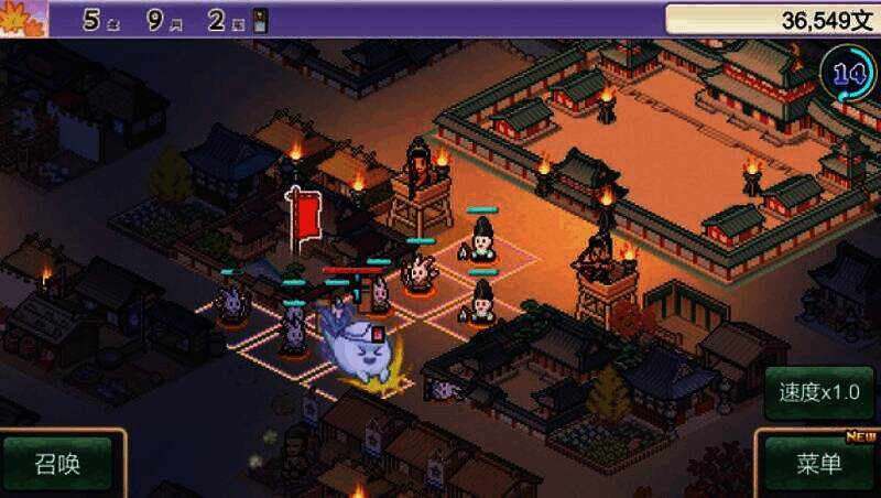 6、守护都城:不时会有妖怪和动物袭击都城,用防卫设施和式神击退它们,击败敌人有机会获得研究点数。