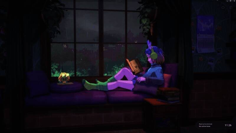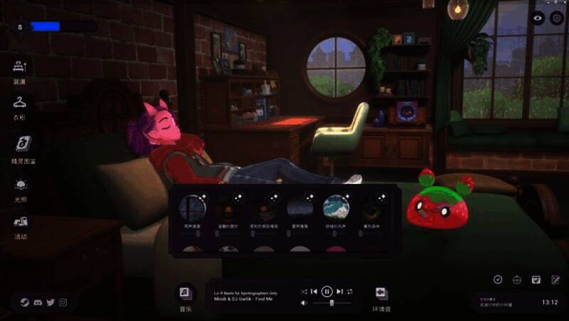 1、惬意的LOFI音乐与音效:轻柔舒缓的Lofi音乐搭配动态声景,如淅淅沥沥的雨声、噼啪作响的炉火声,营造出绝佳的背景氛围,帮助玩家缓解压力、放松身心。游戏音乐由Homework Radio提供,完全支持直播,很适合在YouTube或Twitch平台用作背景音乐。