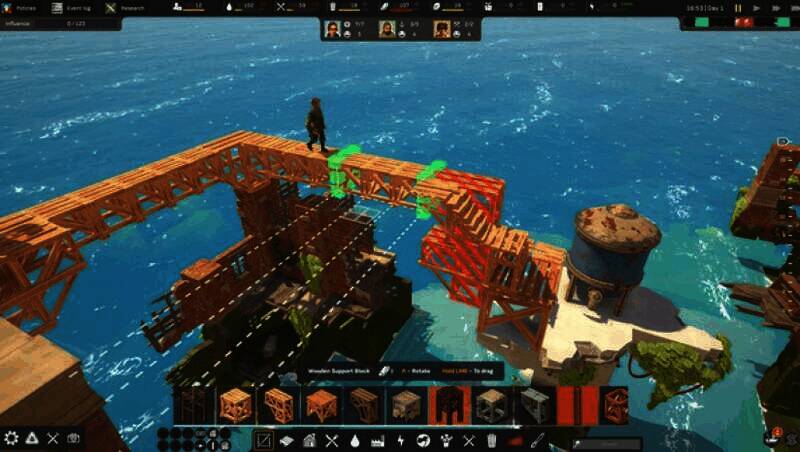 建造如同以人类生命为赌注的“叠叠乐”,每种结构都可能坍塌。玩家要提供足够支撑,利用不同材料创意设计。高风险带来高回报,如建造桥梁或梯子获取资源,堆叠住房节省空间建生产设施。低难度模式下,建筑倒塌可恢复,便于修正错误。