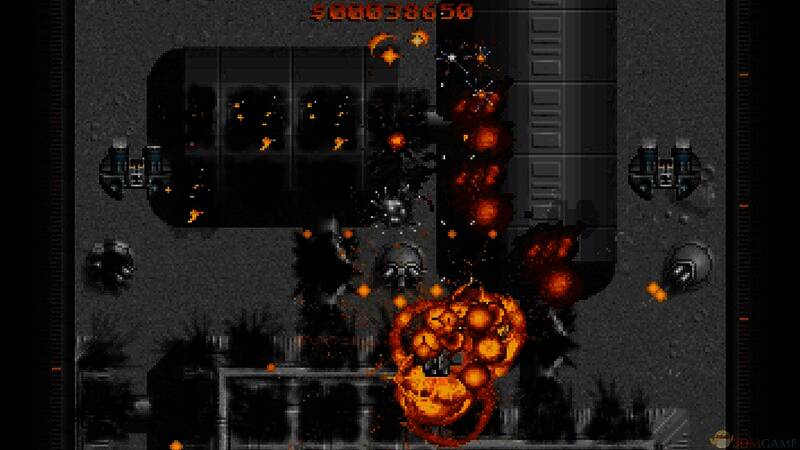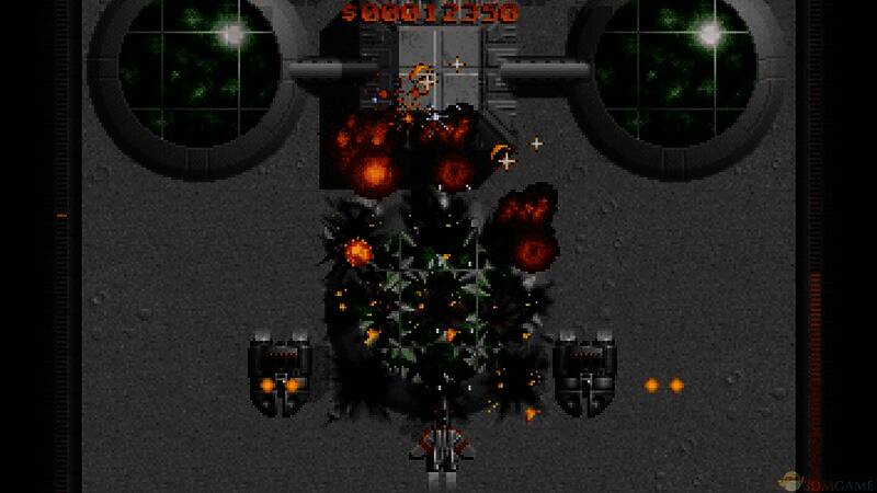 游戏操作仅需射击和投弹两个按键,但武器组合与关卡应对策略富有挑战。主武器有连发机炮和直线激光,机炮适合清理杂兵,激光可穿透敌人造成高伤害;副武器有追踪导弹和散射炸弹,要依据战场情况灵活切换。