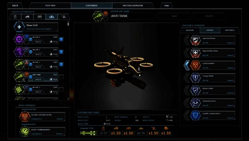 1、锻造您的派系:利用丰富的武器、支持和运动模式类型,对每个部队配置(步兵、轻型车辆、重型车辆、飞机)进行修改。比如为轻型车辆加装再生护甲,或给飞机配备反坦克炮,以适应不同情况和对手。