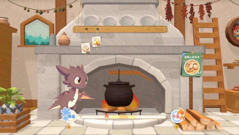 游戏采用低多边形与手绘纹理结合的视觉风格,阳光充足的海滨城镇与奇幻生物栖息地形成鲜明对比。角色动作流畅自然,比如小龙扇动翅膀的细节与烹饪时的烟火特效。