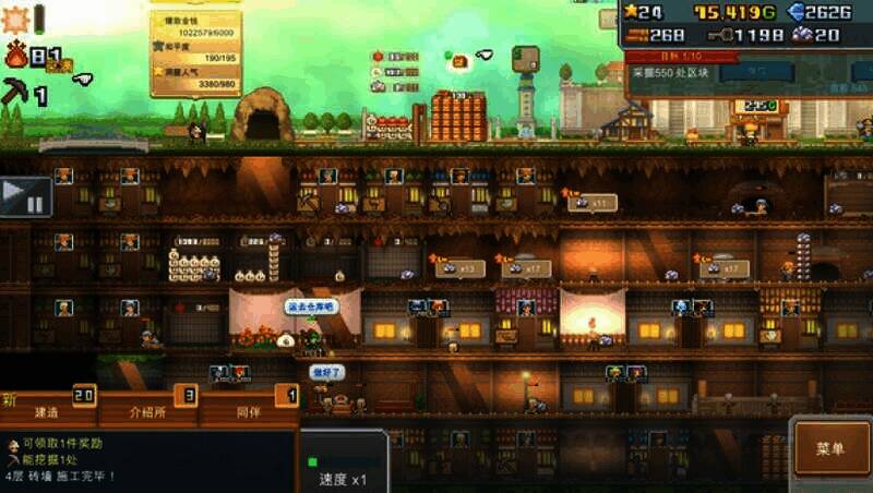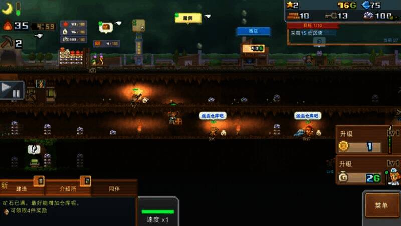 3、资源管理:通过交易或加速研究获钻石、木材等资源,中后期卖道具积累财富,洞窟开店盈利。
