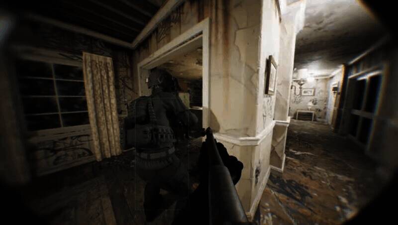 可互动场景元素(如倒塌的墙壁、可击碎的玻璃)会影响战术布局,掩体被炮火摧毁后需要重新规划路线。丧尸模式中,感染者的动态行为与血迹扩散效果强化了恐怖氛围。