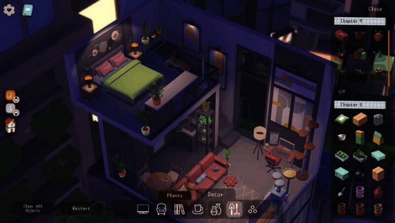 《我的小绿屋》单机中文版是由Kylyk Games制作、Assemble Entertainment发行的休闲模拟游戏,适合爱安静思考的玩家。玩家能把普通小公寓装饰成温馨绿色天堂。玩法简单迷人,画面养眼,音乐舒缓,让人仿若身处宁静绿洲。