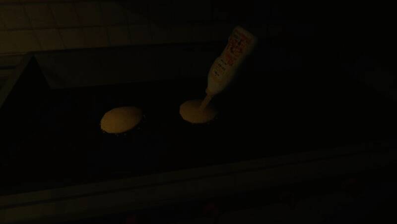 玩家的职责是准备菜品,并通过亭子的窗户为顾客提供服务。可以用菜刀精心准备食材,也能在亭中的烧烤台上烤制美味的肉。顾客有时会想喝点饮品,这时玩家就得为他们准备好汽水与啤酒,偶尔还需在咖啡机上为他们煮上一杯热气腾腾的咖啡。