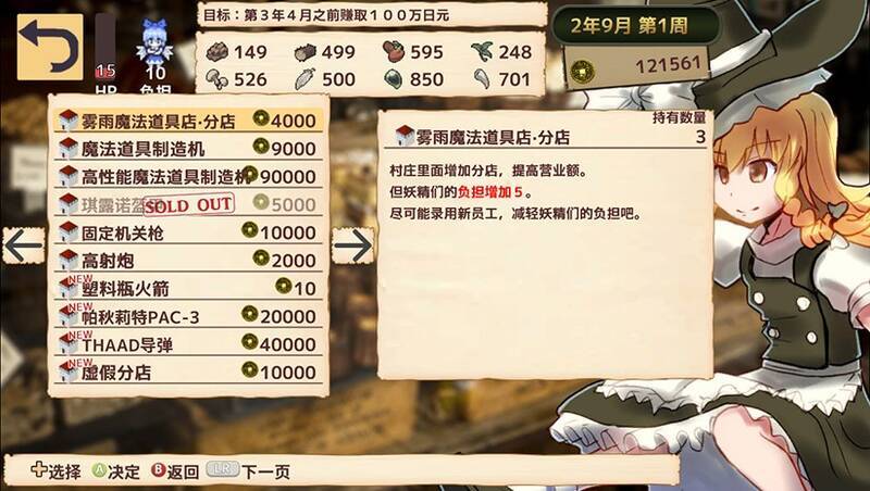 玩家可一边欣赏魔理沙和伙伴带来的欢乐短剧,一边努力赚钱还债。一年内存款达到5万元是首要目标,未达成则游戏结束。可通过开发新商品、增设店铺、战略营销等手段赚钱,同时还要与来捣乱的妖怪战斗。