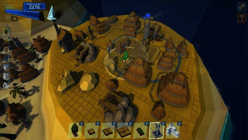游戏玩法十分直观。玩家从空旷的岛屿起步,初始可放置一套标准的施工图。放置建筑物能获得积分,获得的点数取决于建筑物周围的位置以及放置时的具体位置。通过收集积分来改善岛屿并解锁新建筑物。