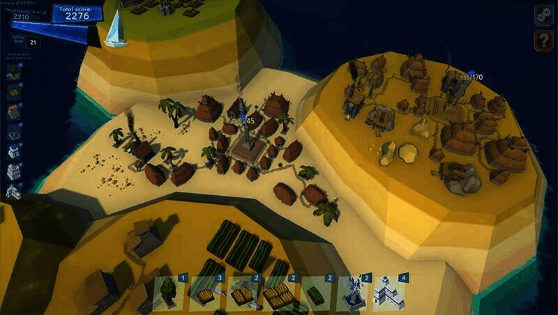 当岛屿发展到足够发达的程度,就可以前往下一个岛屿。若没有建筑物,游戏便会结束。