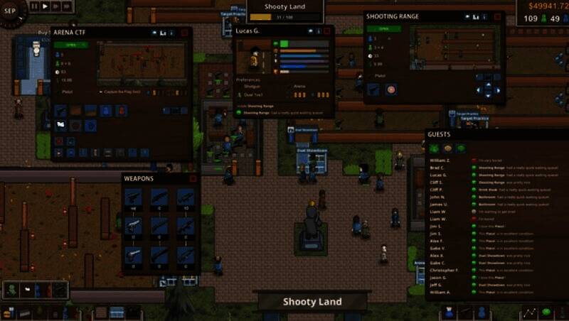 玩家可以随心所欲地设计并建造大逃杀竞技场,精心布置地形、建筑和设施,像商店、洗手间、射击场等一应俱全。与此同时,还需要招募安保人员、医疗人员和游戏主持等员工,并合理安排他们的工作,保障园区的正常运转。
