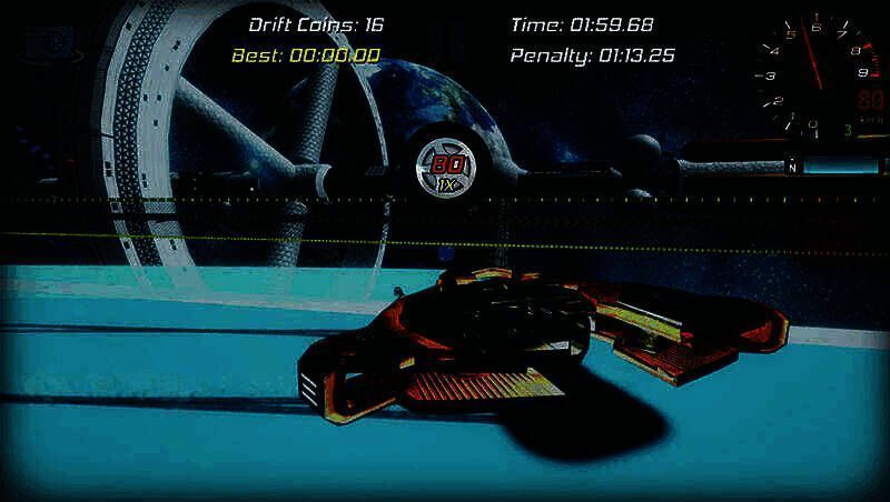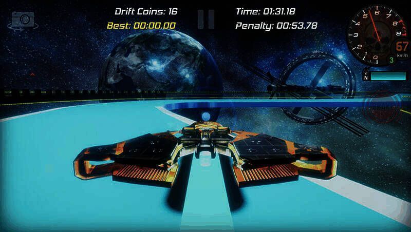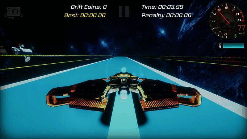 你操控一艘宇宙飞船,需沿轨道行驶并转弯,转弯越强、越长,积分越多,要在全程驾驶中争取获得尽可能多的积分。漂移是过弯技术,比赛在干燥沥青、多弯道赛道进行,仅用后轮驱动飞船。