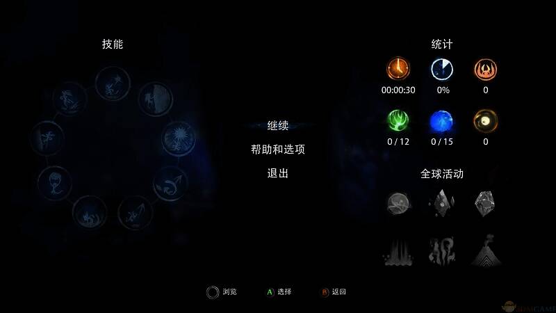 3、能获得技能的圣地共9处,若玩家未获得某项技能,暂停菜单中无法阅读其详细说明。