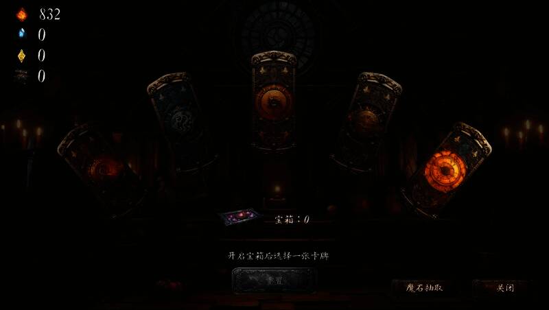 游戏中,玩家通过击败敌人和升级获取卡牌,卡牌分属性卡、技能卡和物品卡三种类型,其效果仅适用于当前游戏会话。