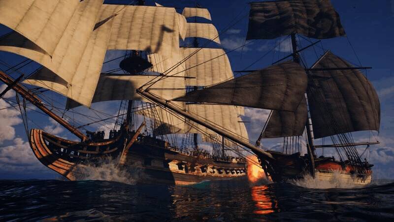 游戏采用风格化写实美术,逼真还原海盗时代景象,如热带岛屿棕榈林、殖民据点木质哨塔、深海沉船残骸等。战斗特效视觉冲击强,音效搭配史诗配乐,营造沉浸式航海氛围。动态天气系统提升环境交互体验。