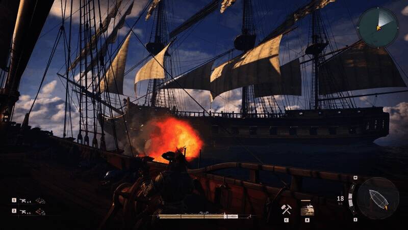 玩家能自由驾驶巡逻艇、盖伦战舰等多种船舰,体验海战玩法。可远程炮击摧毁敌方船只或海岸堡垒,陆地战斗需突袭敌营,用近战武器、火枪及战术道具克敌。战斗系统有魂系格挡与弹反机制,注重操作流畅性,支持单人多角色切换或多人协作挑战Boss。