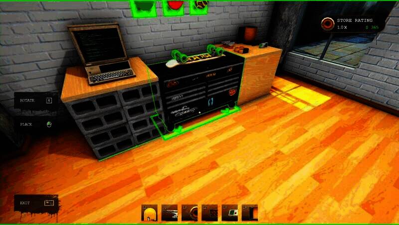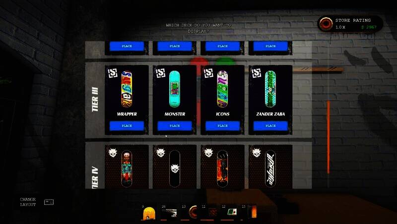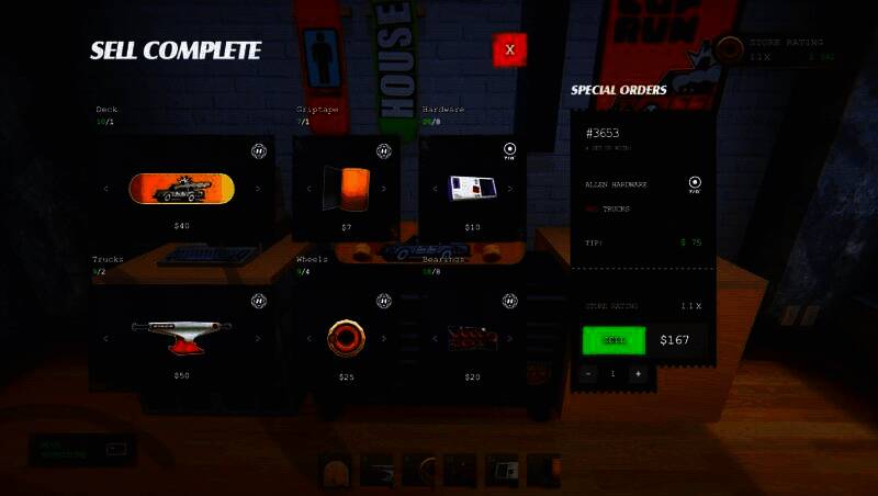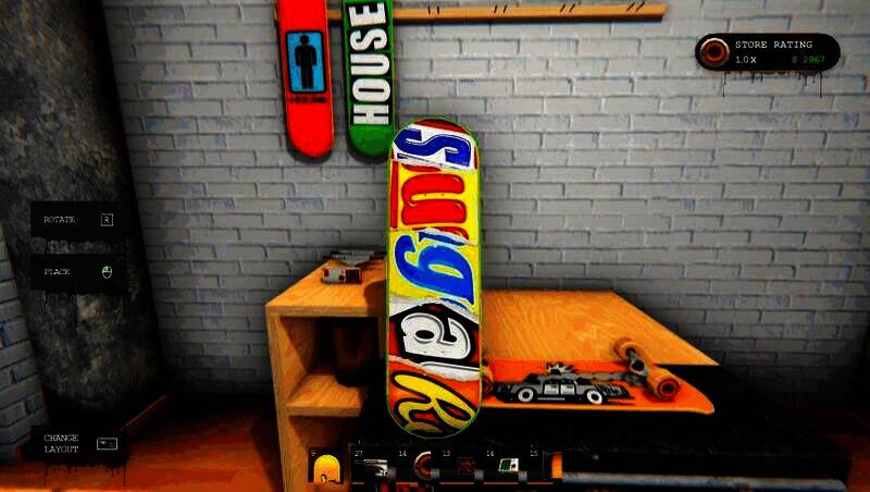 该游戏允许玩家白手起家建立并管理一家滑板店。玩家要组合不同零件制造滑板,合理管理库存,升级供应链,解锁新的滑板类型和店铺区域,目标是打造一家声名远扬的滑板店。
