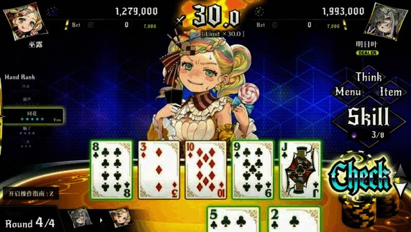 此游戏以德州扑克为核心玩法,玩家需要巧妙运用策略和技巧,通过削减对手的筹码直至归零来赢得胜利。主角具备多种技能,能够控制手牌或者看穿对手底牌,从而在牌局中占据优势。此外,玩家还得深入都市进行探索,收集相关线索,以此破解魔女的千术。